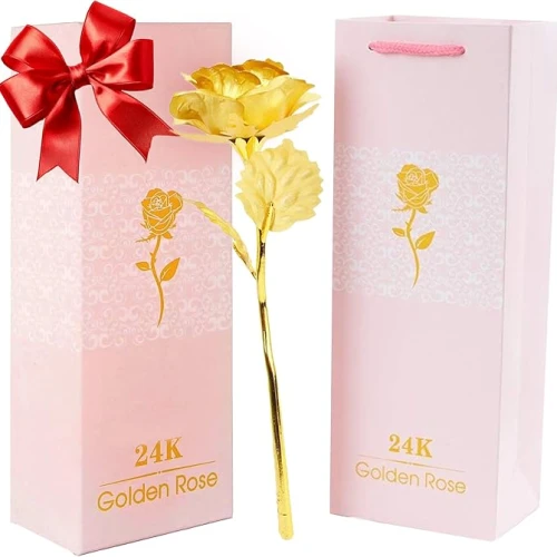 24K Gold Plated Rose with Gift Box – Decorative Artificial Flower Gift for Special Occasions
