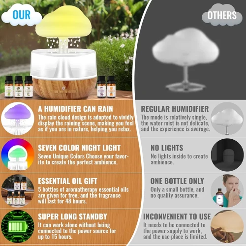 Rain Cloud Humidifier with Customisable Mood Lighting – Stylish LED Night Light & Air Moisturizer